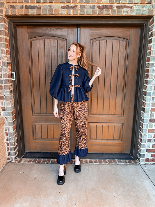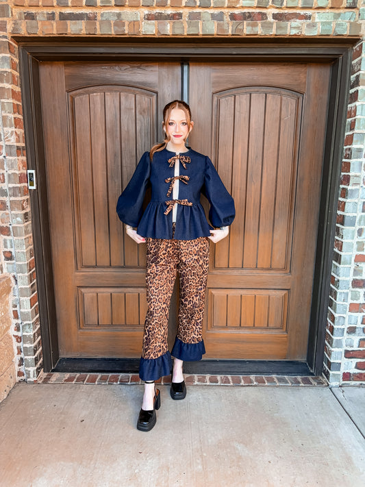 Introducing my cute and stylish Fall Collection. Made with a combination of leopard print and denim, these 100% cotton pieces are both comfortable and unique. With the addition of bow details, these pieces are perfect for your fall fashion wardrobe and will turn heads all season long! Each piece is handmade with all my love and made special for you!